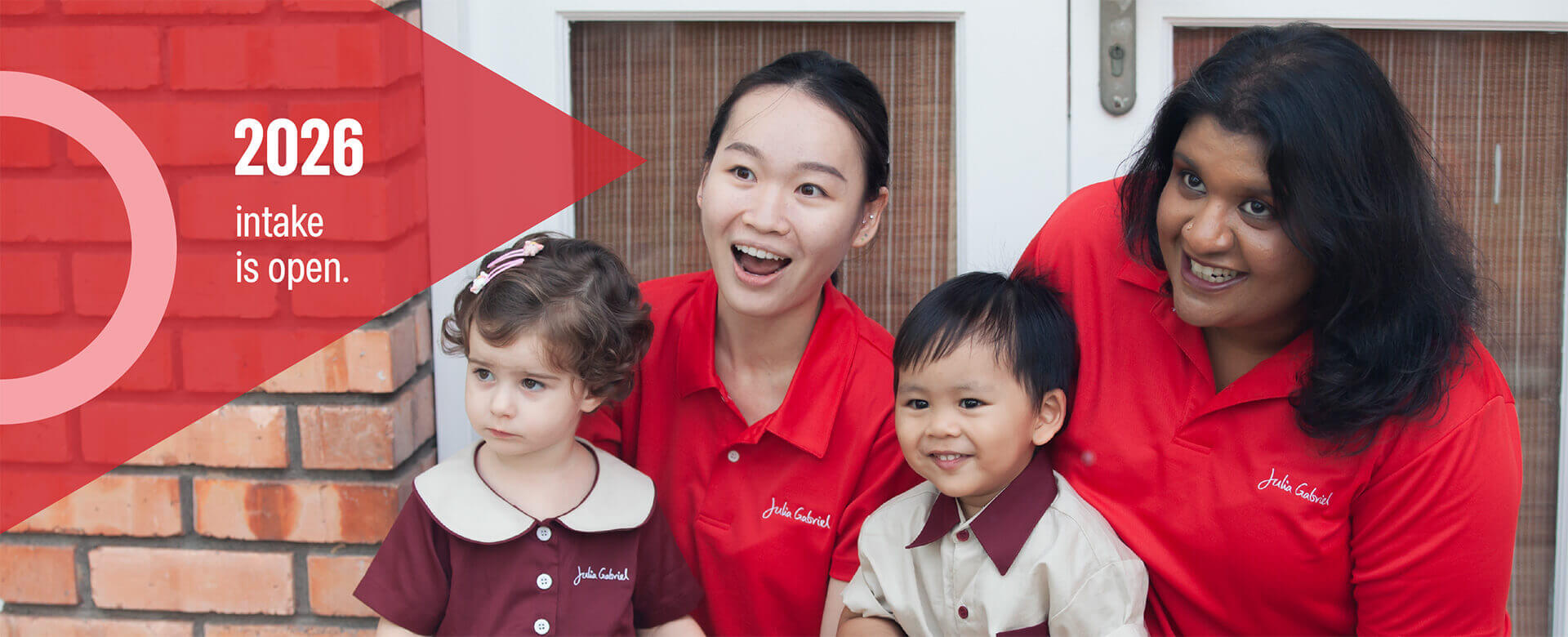 Registration for the 2026 school year is now open. We invite families to book a school visit and speak with our Admissions team about how we can support your child’s learning journey. Julia Gabriel Preschool welcomes children aged 18 months to 6 years, offering a nurturing environment shaped by our EduDrama® learning philosophy. Our approach builds confident communicators, creative thinkers, and self-motivated learners. Discover more about our focus on positive education, mindfulness, and our holistic After School Care programme for working families, available until 6:30pm.